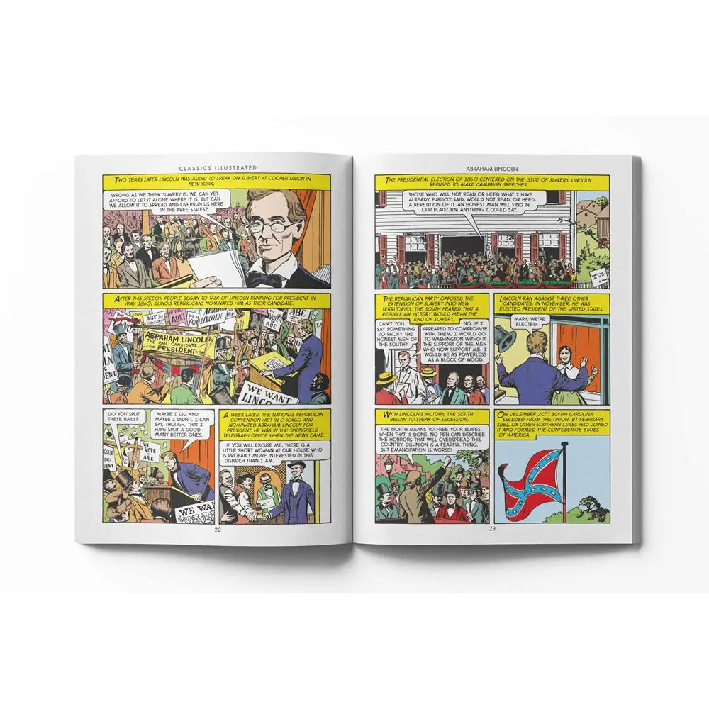 This illustrated biography presents the extraordinary life of Abraham Lincoln, the sixteenth President of the United States, through vivid comic strip storytelling. Designed to engage younger readers, it combines classic illustration with historical accuracy, providing both an accessible introduction and deeper insight into Lincoln’s legacy. The edition includes a detailed timeline of key events and study questions, making it a valuable resource for educators and students alike to explore the complexities of Lincoln's life and presidency.